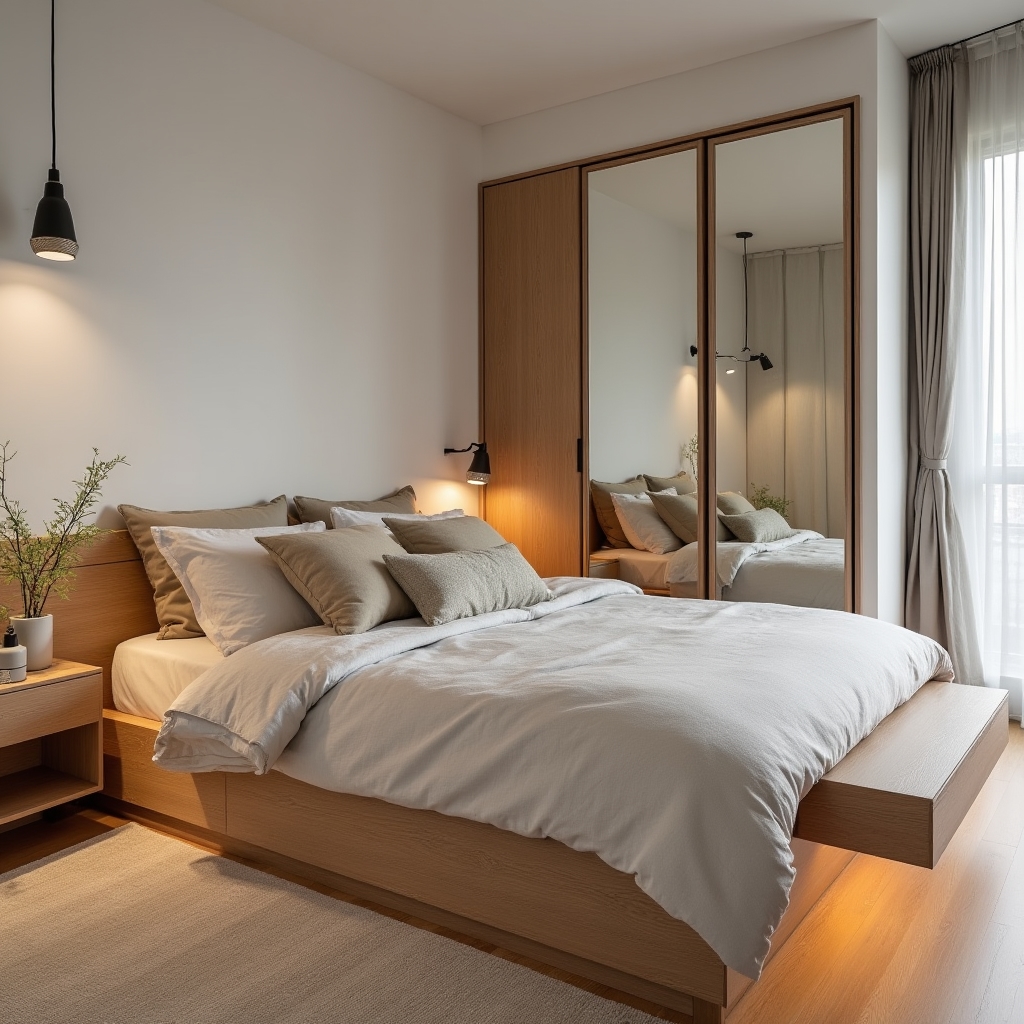 Strategic lighting that makes a 42 m² apartment feel larger. We work with the light you have — including south-facing windows — to maximize perceived volume.